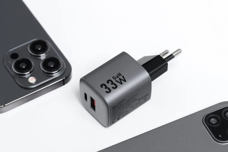 Wyposażona w port USB-C (33W) i USB-A (18W), umożliwia jednoczesne ładowanie dwóch urządzeń, takich jak smartfony, tablety czy inne akcesoria. Obsługuje zaawansowane technologie szybkiego ładowania Power Delivery (PD) i Quick Charge 4.0, które pozwalają naładować urządzenia do 100% nawet w ciągu godziny*.