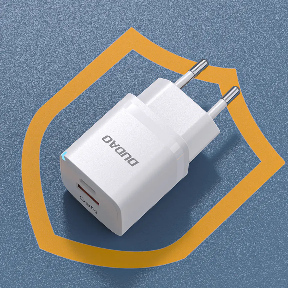 - - Ładowarka w technologii GaN - Ładowarka sieciowa od Dudao to technologia pozwalająca uzyskać maksymalną wydajność, a przy tym bezpieczeństwo i stabilność pracy nawet podczas ładowania 2 urządzeń na raz. Zastosowanie azotku galu zmniejsza rozmiary ładowarki oraz zwiększa jej wydajność.