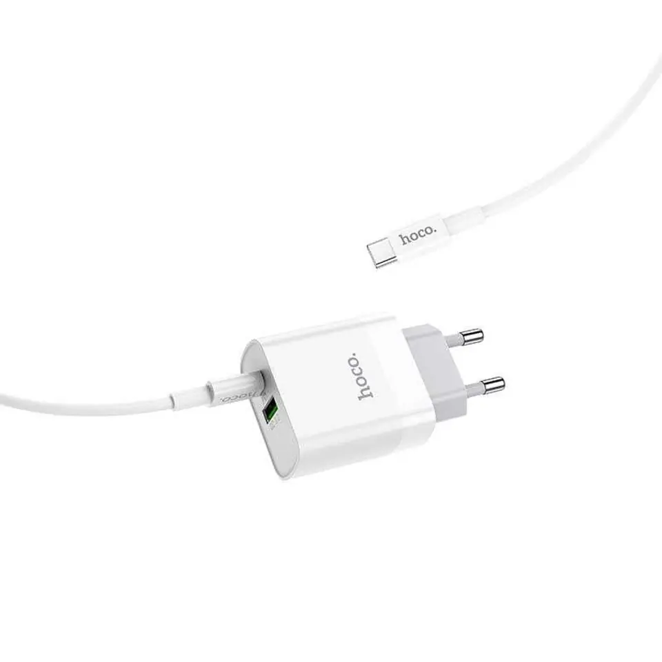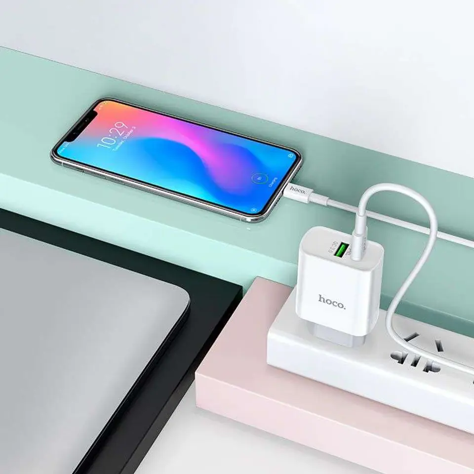 Ładowarka sieciowa Hoco C80A, to kompaktowe urządzenie, wyposażone w 2 porty: USB Type-C ze standardem PowerDelivery oraz standardowy USB o łącznej mocy 20W.