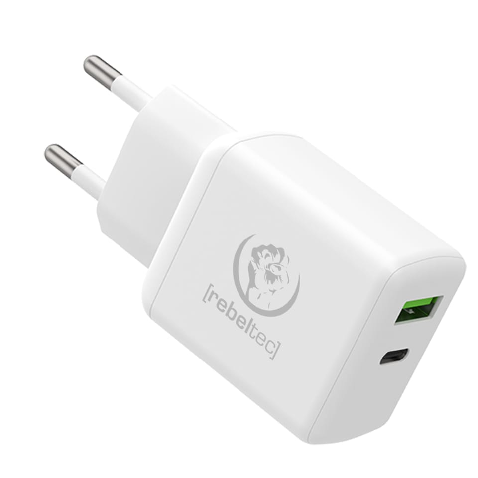 ŁADOWARKA SIECIOWA REBELTEC H200 PD20W QC 3.0 1x-C 1xA WHITE