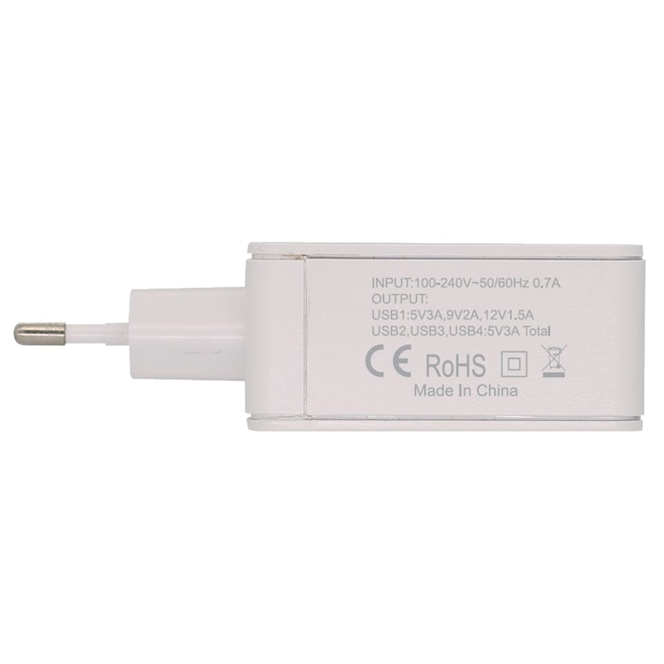 Bardzo szybka ładowarka sieciowa działająca w technologii QC3.0: 4 porty USBprzeznaczona do ładowania telefonów, tabletów, oraz innych urządzeń ładowanych z USBwejście sieciowe: 100-240V~50/60Hzmaksymalny pobór prądu 0,7Ajeden port USB zgodny z QC3.0: 5V / 3A; 9V / 2A; 12V / 1,5A3 porty USB 5V / 3A maxwtyczka EUmateriał ABSwaga 116gOSTRZEŻENIA ładowarka przystosowana do prazy z prądem 100-240V~50/60Hznie próbować otwierać obudowy ładowarkiunikać narażania ładowarki na pracę w warunkach zwiększonej wilgotności powietrza