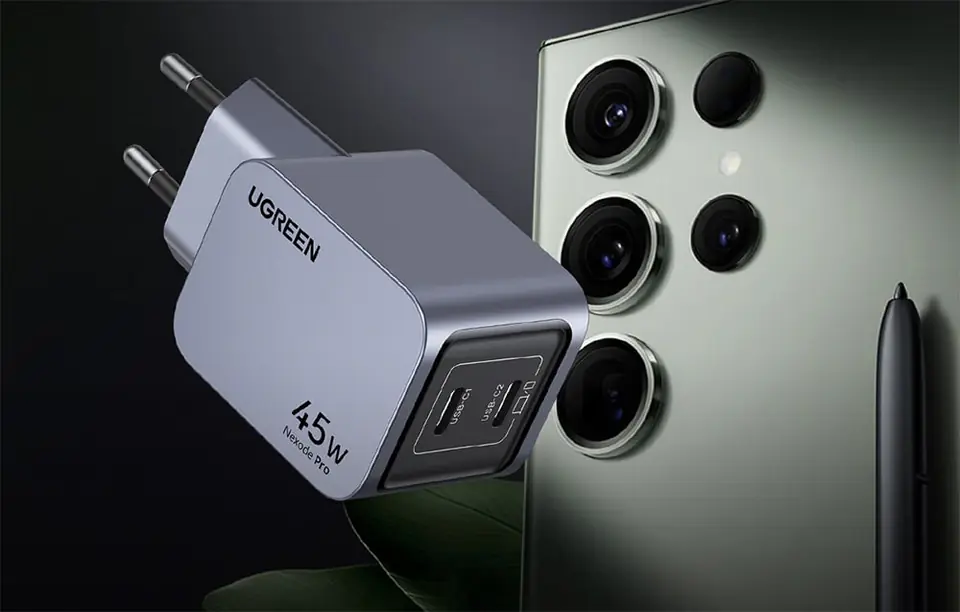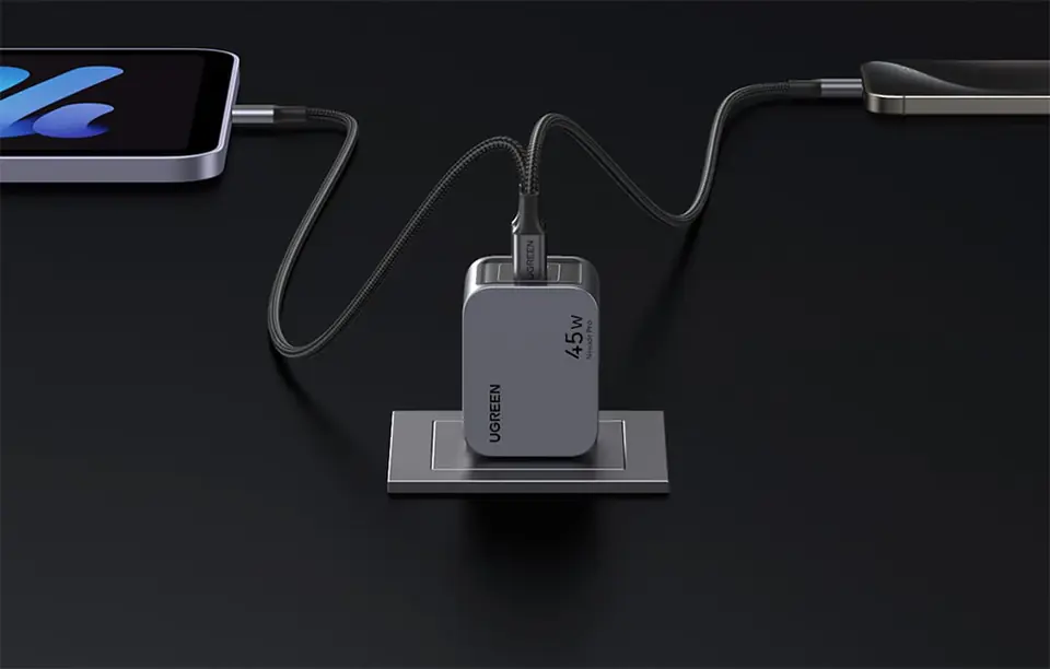 Ładowarka UGREEN Nexode Pro to doskonałe połączenie wydajności i kompaktowego designu, które sprawi, że ładowanie Twoich urządzeń stanie się szybsze i wygodniejsze niż kiedykolwiek wcześniej. Dzięki mocy 45 W i wsparciu dla wielu protokołów szybkiego ładowania możesz naładować swoje urządzenia w niezwykle krótkim czasie. Została wyposażona w 2 porty USB-C oraz wykorzystuje chip GaNInfinity, który nie tylko zapewnia niezrównaną wydajność, ale także zmniejsza rozmiar urządzenia.