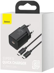 Ładowarka sieciowa usb-c baseus mini power delivery 25w z kablem usb-c 100 cm czarna