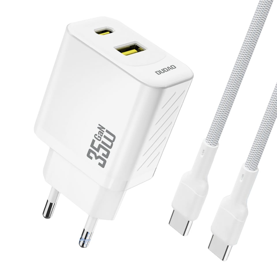 Kod produktu: 1030243Dudao A27 MaxC to kompaktowa i wydajna ładowarka sieciowa z mocą do 35 W, która umożliwia szybkie i bezpieczne ładowanie wielu urządzeń. Wyposażona w dwa porty - USB-C oraz USB-A - pozwala na jednoczesne podłączenie różnych sprzętów, co zwiększa jej funkcjonalność w codziennym użytkowaniu. W zestawie znajduje się kabel USB-C o długości 1 m, wspierający szybkie ładowanie i transfer danych. Biała kolorystyka, lekka konstrukcja i kompaktowe wymiary sprawiają, że ładowarka idealnie nadaje się zarówno do domu, biura, jak i podróży.Najważniejsze cechy: