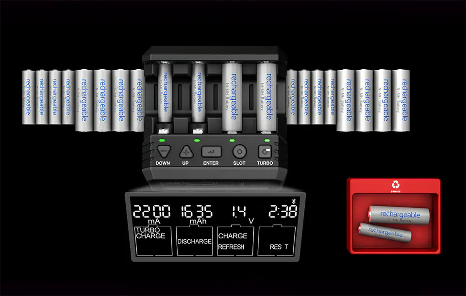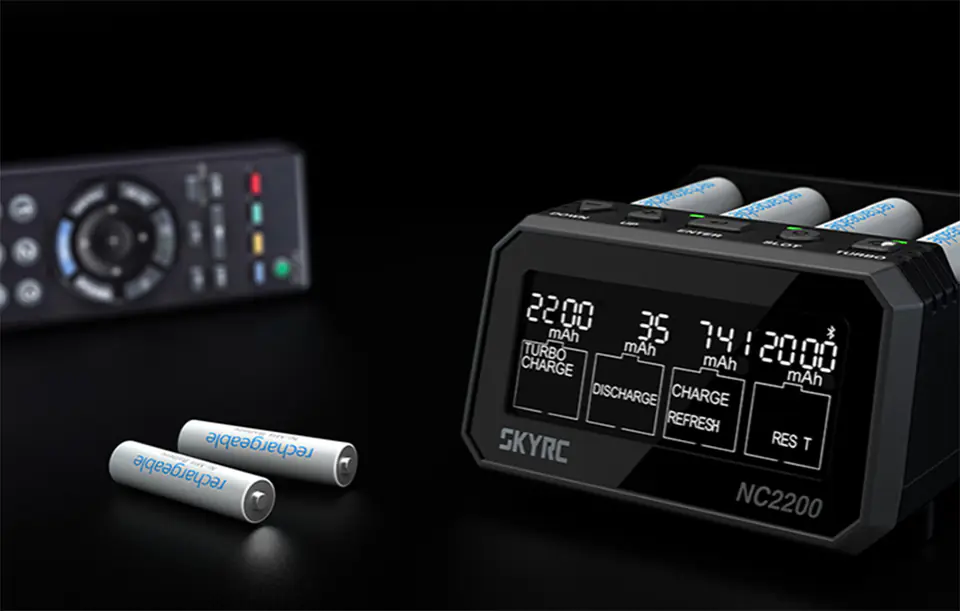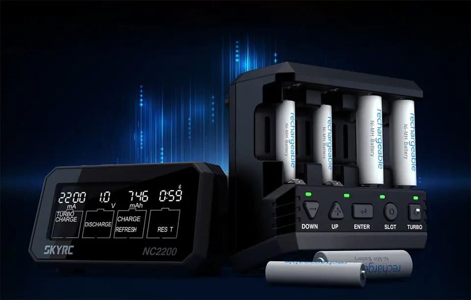 SkyRC NC2200 to ładowarka akumulatorów AA / AAA, która pełni również szereg różnych innych funkcji. Z jej pomocą naładujesz, rozładujesz oraz zregenerujesz swój akumulator. Co więcej, urządzenie potrafi również łączyć ogniwa oraz wykonywać pomiary rezystancji. Ładowarka posiada 4 niezależne sloty, dzięki czemu możesz wykonywać różne operacje w tym samym czasie.