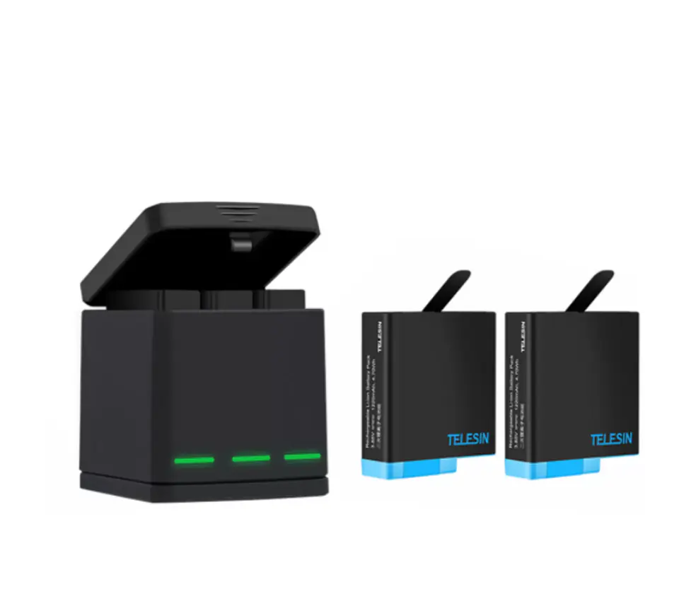 Zestaw GP-BNC-801 od Telesin rozwiąże problemy z ładowaniem baterii do GoPro Hero 8. Ładowarka nie tylko umożliwia szybkie odnowienie baterii kamery, ale również pozwala przechować je, aby zapobiec zgubieniu. Dzięki GP-BNC-801 możesz wygodnie naładować 3 akumulatory GoPro Hero 8 jednocześnie, również podczas podróży, podłączając akcesorium do ładowarki samochodowej, powerbanka, lub komputera.