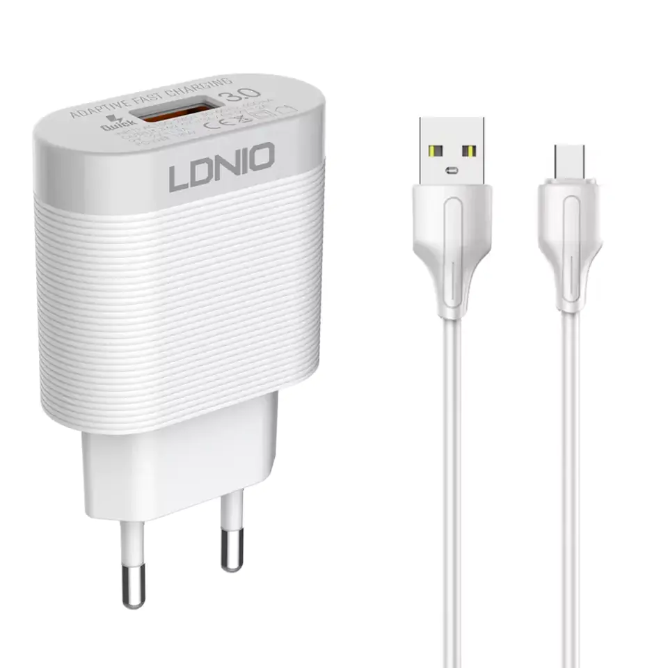 LDNIO A303Q to urządzenie, które umożliwia szybkie i wygodne ładowanie akumulatorów w urządzeniach przenośnych takich jak smartfony, tablety czy też inne gadżety. Ładowarka jest wyposażona w port USB-A, dzięki czemu można ją podłączyć do większości popularnych urządzeń. Ładowarka posiada również funkcję Quick Charge 3.0, co oznacza, że urządzenie jest w stanie szybko i efektywnie naładować akumulatory o dużej pojemności. W zestawie jest także kabel USB-A na Micro-USB o długości 1m.