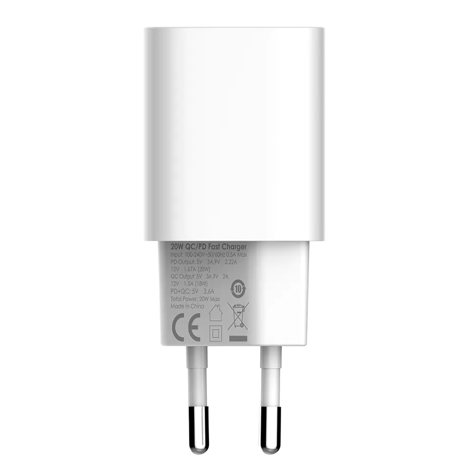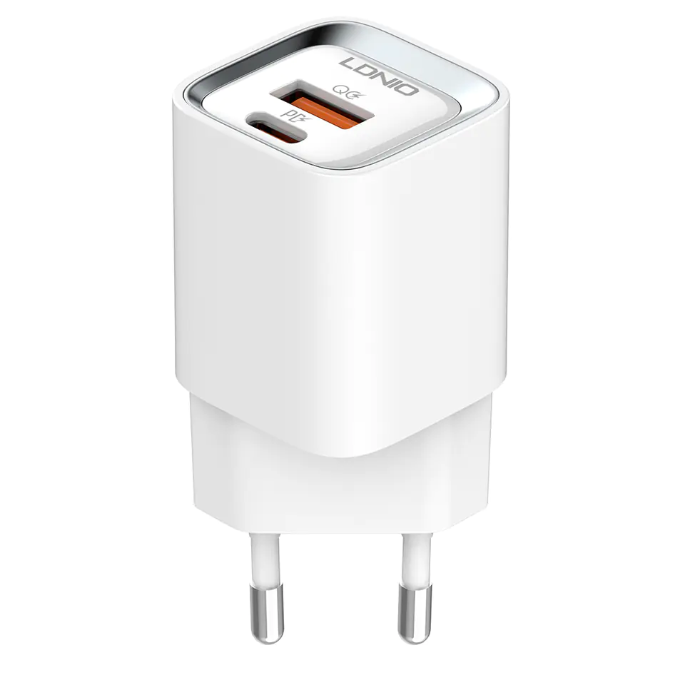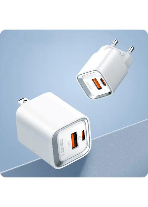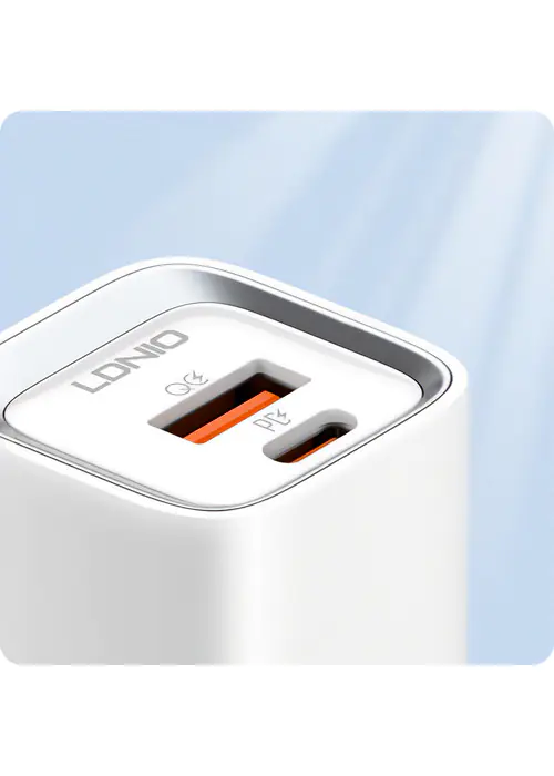 Ładowarka z portami USB-A QC 3.0 i USB-C PDZastosowanie dwóch portów pozwala na łądowanie dwóch urządzeń w tym samym czasie. Jest to bardzo wygodne rozwiąznie, ponieważ pozwala zaoszczędzień miejsce w gniazdu lub listwie.