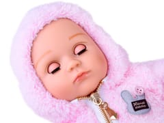 Lala wyglądem przypomina noworodka. Ma mięciutki materiałowy brzuszek a główkę, rączki i nóżki z twardej gumy. Po położeniu lalki, jej oczka zamykają się. Niczym prawdziwy niemowlak nie ma włosków na głowie, ale przed zimnem chroni ją cieplutka, przyjemna w dotyku różowa bluza z kapturem. Całości stroju dopełniają stylowe szare getry w kropki. Dołączona do zestawu pieluszka pozwoli na poćwiczenie umiejętności przewijania maluszka.