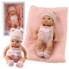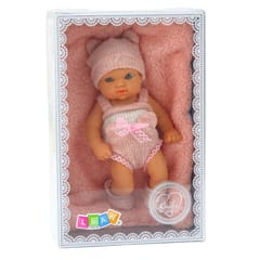 LALKA NIEMOWLAK BOBAS 18 CM Z KOCYKIEM W RÓŻOWYM UBRANKU