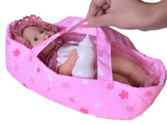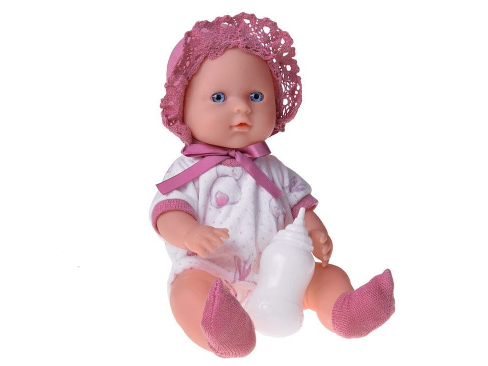 Zestaw lalka i nosidełko to idealny zestaw dla wszystkich małych mam i tatusiów. Zestaw jest idealny do podróży i spacerów. Zestaw z dodatkami to wymarzony zestaw dla każdej mamy i przyszłego rodzica. Urocza lalka z przepięknymi niebieskimi oczkami, w różowej czapeczce i białym ubranku w króliczki. Po napojeniu jej płynem siusia. Cała lalka jest wykonana z gumy, a jej kończyny są ruchome. Nosidełko wykonane jest z wysokiej jakości materiałów. Do nosidełka przyszyte są paski ułatwiające transportowanie laleczki. Dodatkowo w zestawie znajdują się także akcesoria do karmienia dziecka. Gotowy kompaktowy zestaw idealnie wpasuje się nawet w małe pokoje dziecięce. Nosidełko jest dość duże i pomieści lalki o wzroście do 30 cm!