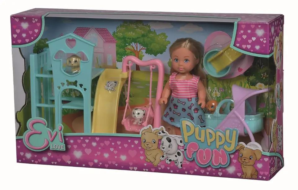 Lalka Evi na placu zabaw dla szczeniaków