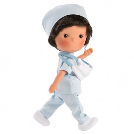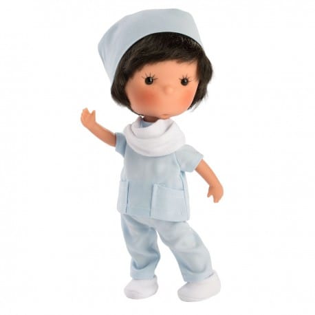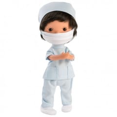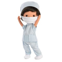 Seria Miss Minis to niesamowita nowość uwielbianej marki Llorens. Ten słodki mały chłopczyk to 26 cm słodkości w stroju pielęgniarza. Lalka czaruje swoimi czarnymi oczkami, piegowatymi policzkami z rumieńcem i modną fryzurą. Laleczka jest ubrana w niebieską bluzeczkę, niebieskie spodnie, czapkę oraz białe buciki. Do zestawu dołączona jest maseczka. Lalka jest wykonana z przyjemnego w dotyku winylu i ma ruchome ręce, nogi oraz głowę. Lalki Miss Minis to świetne przyjaciółki, które pomogą dziecku zrozumieć pracę lekarzy. Lalka została zapakowana w ozdobny karton. Kochamy hiszpańskie lalki Llorens! 52612