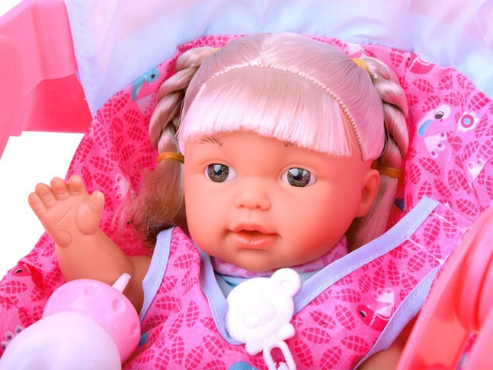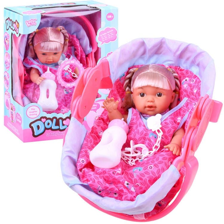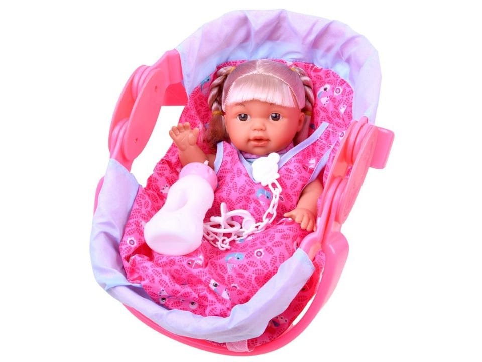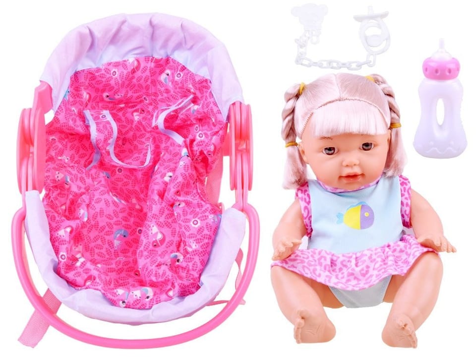 Uroczy zestaw dla każdej małej mamusi, tatusia. Zestaw składający się z lalki i nosidełka sprawdzi się podczas podróży, spaceru.Zestaw z akcesoriami to zestaw wymarzony dla każdej przyszłej mamy, rodzica.Laleczka z długimi blond włosami, potrafi gaworzyć, śmiać się jak niemowlaczek. Po napojeniu jej płynem siusia.Cała lalka wykonana jest z plastiku, posiada ruchome kończyny, twarz lalki jest gumowa.Nosidełko świetnie wykonane z plastiku. Posiada ruchome rączki, szelki do przypięcia np. do walizki.Dodatkowo zestaw zawiera akcesoria do karmienia niemowlaka. Pełen kompaktowy zestaw sprawdzi się w każdym małym pokoju dziecięcym. Dzięki temu iż nosidełko jest dość duże zmieści się w niej lalka ze wzrostem do 30cm!Funkcje głosowe lalki:- śmiech- mama- gaworzenie- baba- cmokanie- płacz- radość- kichanie- bekanieZestaw zawiera:- urocza lalka- butelka- smoczek na łańcuszku- nosidełkoWymiar nosidełka:- 34 x 23 x 20cm Dzieci uwielbiają opiekować się swoimi zabawkami, a dzięki tej zabawce będą mogły poczuć się jak prawdziwa mama, tata. Dziecko już od najmłodszych lat będzie uczyło się delikatności i troski o najbliższych. Zabawka rozwija zdolności manualne i wyobraźnie. Uczy opiekuńczości, odpowiedzialności i porządku. Nosidełko jest bardzo starannie i estetycznie wykonane.