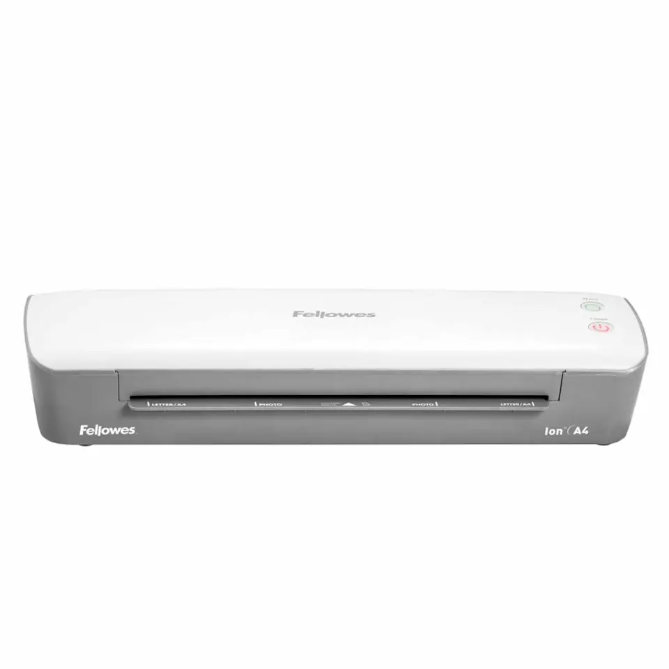 * Laminator Fellowes Ion A4 do użytku domowego * Laminator do okazjonalnego użytku w domu – do ok. 30 laminacji tygodniowo * Prosty w obsłudze – bez dodatkowych ustawień, wystarczy włączyć, * zielona kontrolka sygnalizuje gotowość do pracy * Niewielkie wymiary i zdejmowana prowadnica na zalaminowane dokumenty pozwalają na przechowywanie laminatora np. w szufladzie * Do laminacji dokumentów i zdjęć nie jest wymagane używanie carriera * Max format laminowanego dokumentu: A3 * Szerokość szczeliny wejściowej: 318 mm * Maksymalna grubość folii laminacyjnej: 125 mik. * Laminacja na gorąco * Funkcja zwalniania napędu wałków ułatwia wycofanie zakleszczonego lub nieprawidłowo włożonego dokumentu * Laminator Fellowes Ion A3 jest bezpieczny – automatyczne wyłączenie po 30 minutach braku aktywności * Pakiet startowy 10 szt. folii A4 80 mik. w zestawie * Rok gwarancji na urządzenie
