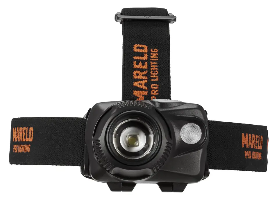 Udaroodporna latarka czołowa, ładowalna, o bardzo silnym świetle, z regulacją skupienia strumienia światła (zoom). Kilka trybów świecenia, używanych stosownie do potrzeb, a także czerwone światło ostrzegawcze. W czasie ładowania akumulatora podstawowego można używać 3 baterii alkalicznych AAA. Z pokryciem gumowym od wewnątrz, zapewniającym dobre trzymanie się na głowie. W zestawie akumulator i ładowarka USB.