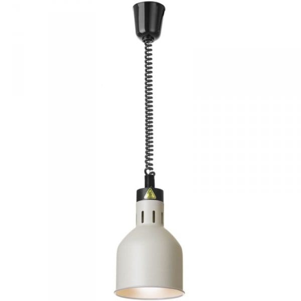 Kod producenta: 1030746Lampa do podgrzewania potraw wisząca, cylindryczna HENDI posiada regulowany przewód o długości od 70 do 150 cm, który umożliwia precyzyjną regulację natężenia ciepła i położenia lampy. W zestawie znajduje się odporna na stłuczenie żarówka zwiększająca bezpieczeństwo. Wygodny przełącznik umieszczony na górze lampy zapewnia łatwą obsługę.Cechy produktu:
