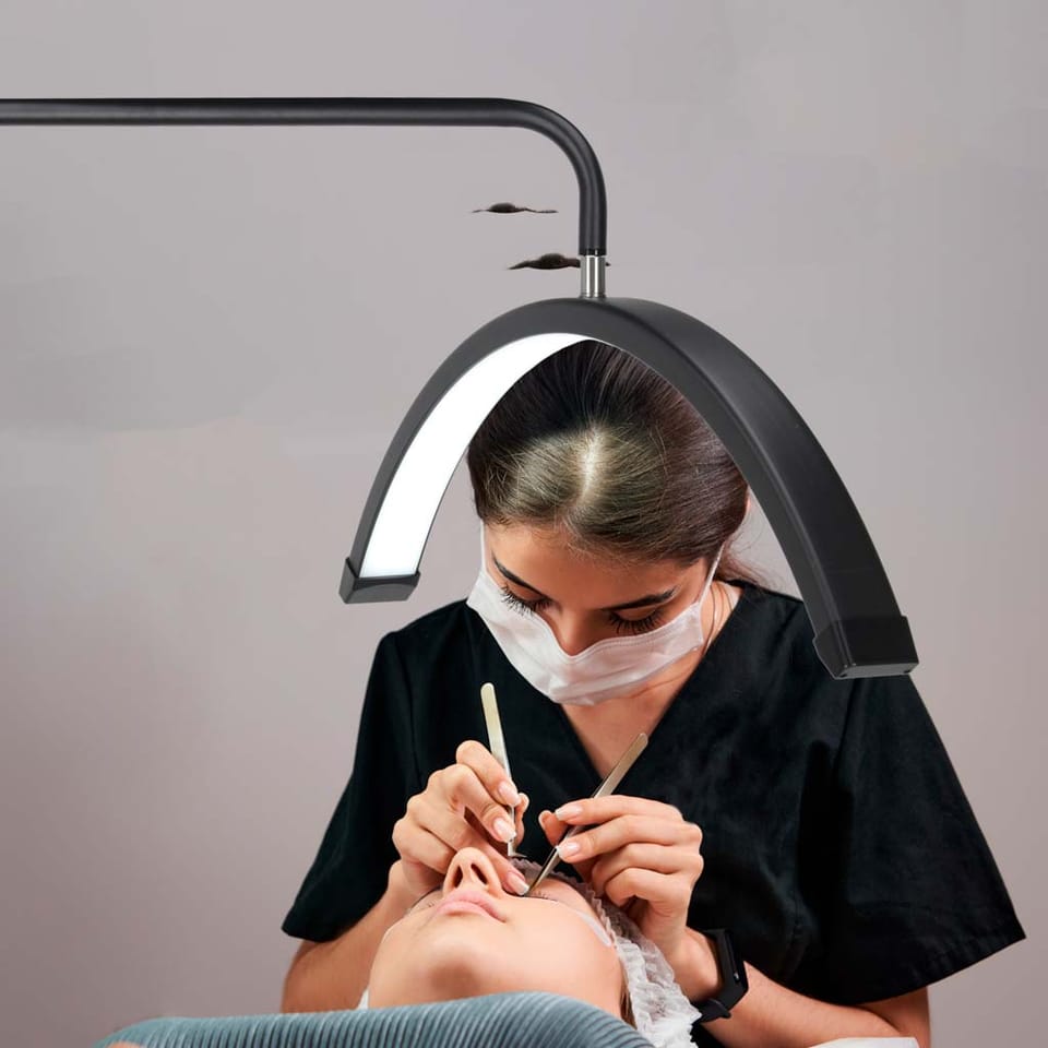 Bezcieniowa lampa łukowa LED z regulowaną wysokością jest stworzona z myślą o wykonywaniu zabiegów kosmetycznych. Dzięki niej w dokładny i precyzyjny sposób można wykonywać zabiegi pielęgnacyjne na twarz i ciało, między innymi przedłużanie rzęs, regulację brwi i wąsika czy makijaż permanentny. Lampa posiada 7 trybów świecenia oraz 10 trybów natężenia światła, zapewniając jak najlepszą widoczność podczas pracy.