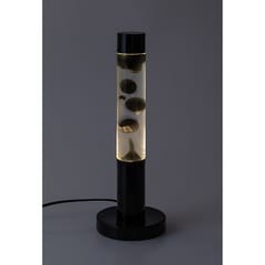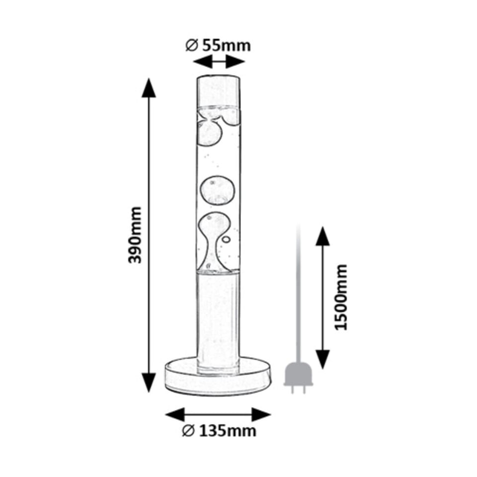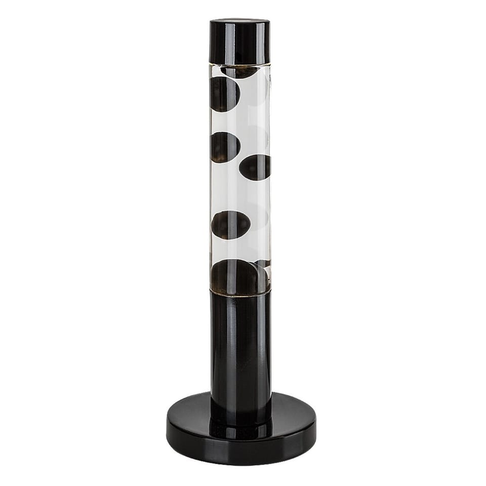 Cechy- Wbudowane źródło światła LED zapewnia energooszczędne działanie i długą żywotność- Korpus i dekoracyjna podstawa wykonane są z metalu, a abażur z przezroczystego szkła- Wewnątrz lampy znajduje się przezroczysta ciecz z czarnym woskiem- Idealny wybór do salonu, pokoju dziecięcego lub sypialni- Wysokość: 390 mm