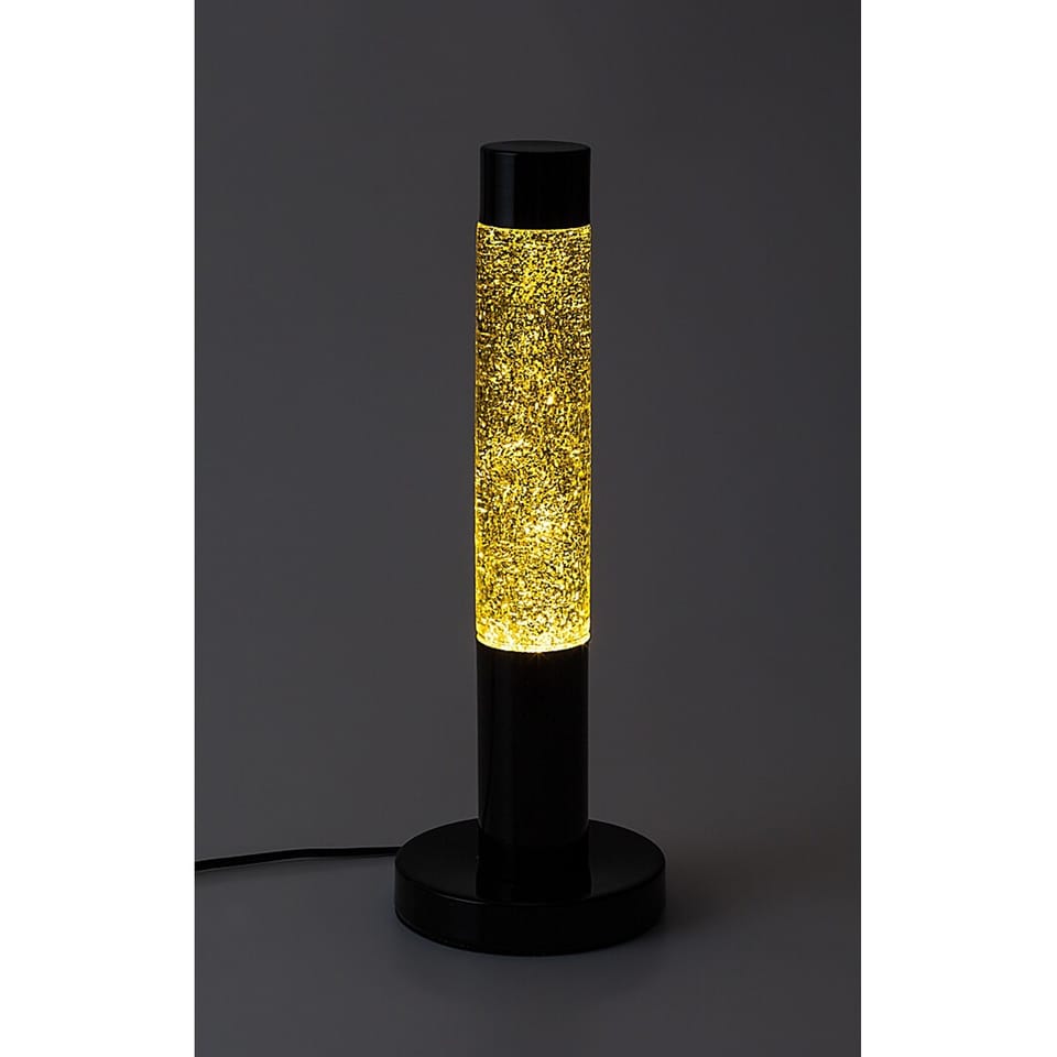 Dekoracyjna lampa Rabalux Lavastic jest idealnym wyborem dla osób, które szukają spektakularnego i eleganckiego oświetlenia nastrojowego. Wnętrze lampy wypełnione jest złoconym, łuszczącym się płynem, co nadaje temu modelowi jasny, świąteczny wygląd. Cylindryczny korpus i dekoracyjna podstawa w kształcie dysku wykonane są z metalu w kolorze czarnym, a abażur z przezroczystego szkła.
