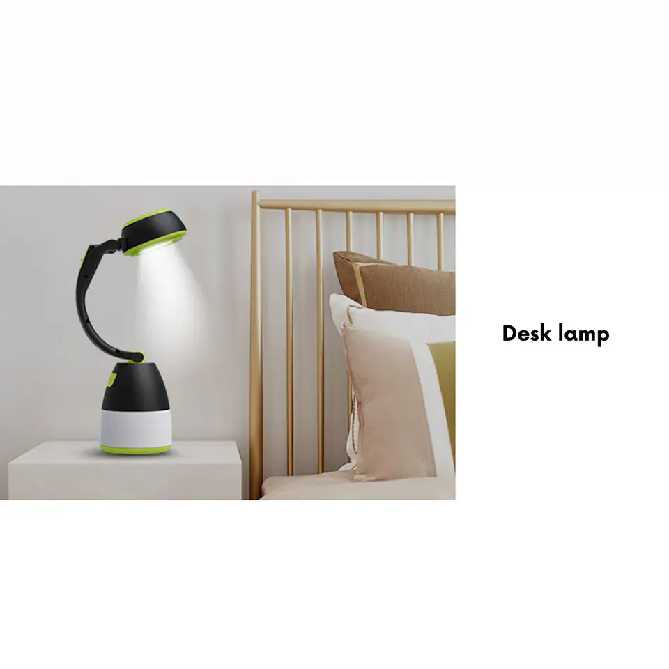 Cechy- 3w1: lampka biurkowa, latarka i lampka kempingowa- Wygodny uchwyt ułatwia przenoszenie- Maksymalny strumień świetlny: 200 lumenów- Idealna do użytku w domu i na zewnątrz, np. podczas wędkowania, spaceru, na biwaku, pikniku itp.- Zasilanie: 3x baterie AA (brak w zestawie)