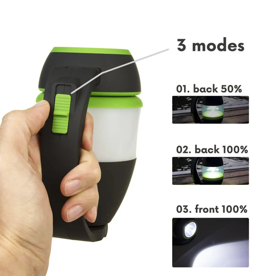 Wysokiej jakości wielofunkcyjna lampka LED. Może służyć jako latarka lub lampka kempingowa, a po rozłożeniu również jako lampa biurkowa.Idealna do zabrania na pieszą wędrówkę, biwak, wypad na ryby lub spacer po lesie.Wbudowany przełącznik pozwala na wybranie jednego z trzech trybów świecenia: 50% i 100% dla tylnego światła i 100% dla przedniego światła.