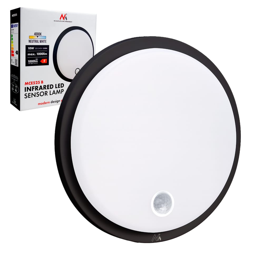 Lampa LED z czujnikiem ruchu Maclean , czujnik PIR, kolor czarny, 10W, IP65, 1000lm, barwa neutralna, MCE525 B