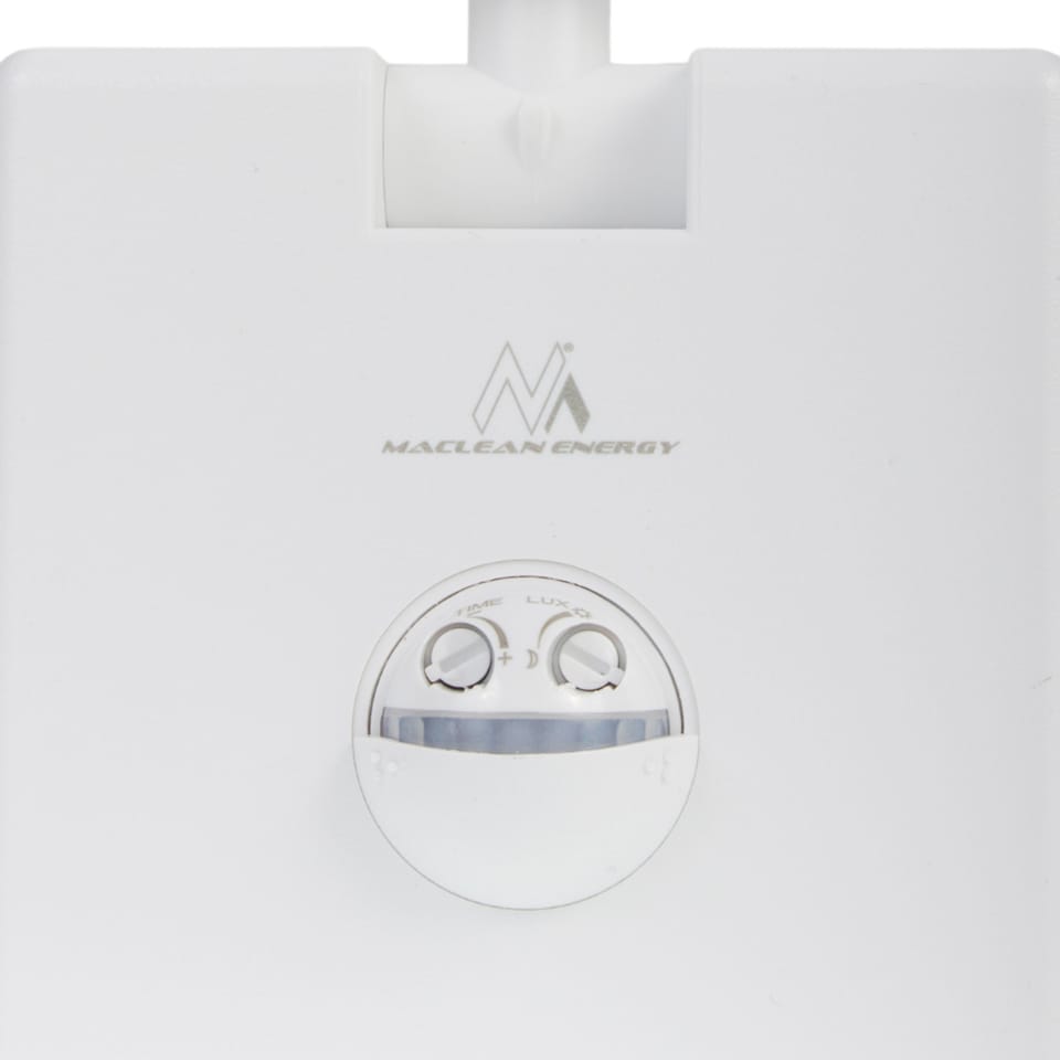 Specyfikacja- Producent: Maclean- Model: MCE516 W- Wymiary: 19,5 cm (wysokość), 8,8 cm (szerokość)- Kolor: biały- Napięcie: 220-240 V/AC- Częstotliwość zasilania: 50/60 Hz- Moc: 10W- Klasa energetyczna: F- Światło otoczenia: < 3 do 2000 LUX (regulowane)- Regulacja czasu świecenia: min. 10 sek. +/- 3 sek.; maks. 5 min. +/- 1 min.- Zakres detekcji: 140°- Odległość detekcji: maks. 9 m- Strumień świetlny: 800lm- Temperatura barwowa: 4000K (neutralna biała)- Temperatura pracy: -20 - +40°C- Dopuszczalna wilgotność: < 93 %- Wysokość montażu: 1,8 do 2,5 m- Szybkość wykrywanego ruchu: 0,6 do 1,5 m/s- Klasa szczelności: IP65- Materiał wykonania: tworzywo sztuczne- Żywotność: 25000 godzin- Kąt świecenia: 120°- Minimalna odległość źródła światła od oświetlanych obiektów: 0,5 m