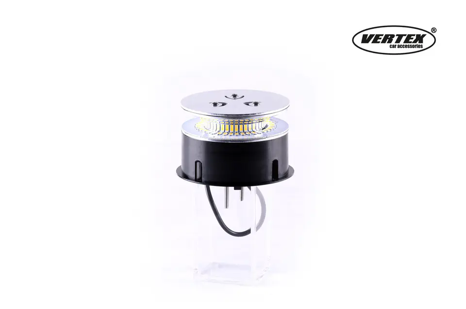 Lampa ostrzegawcza WAR09P: Homologacja ECE R65, ECE R10 39 Super jasnych diod LED ECE R65 120 mrugnięć na minutę Temperatura pracy: -30°C do +50°C Napięcie stałe: 12-24V Stopień ochrony IP56 Podłączenie przez wspornik klosz z poliwęglanu - odporny na uszkodzenia mechaniczne