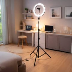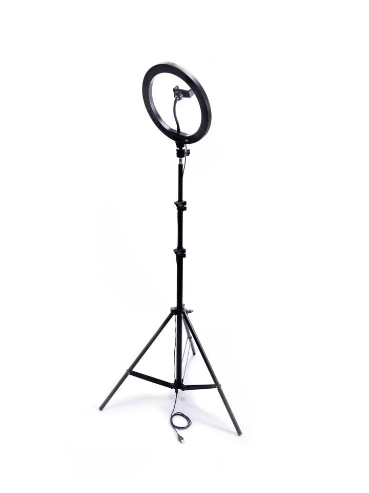 Nowoczesna, pierścieniowa konstrukcja lampy umożliwi równomierne oświetlenie twarzy lub innego obiektu.