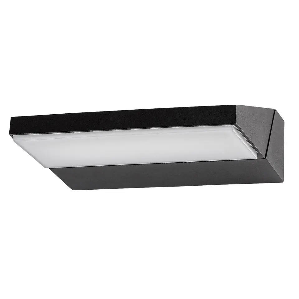 Specyfikacja- Kategoria produktu: lampy ogrodowe- Typ: zewnętrzne lampy ścienne- Styl: nowoczesne- Przeznaczenie: taras, ściana zewnętrzna- Temperatura barwowa: naturalna biel- Strumień świetlny źródła światła: 540 lm- Moc źródła światła: 13W- Technologia LED: tak- Stopień ochrony: IP65- Kolor lampy: czarny- Materiał lampy: aluminium- Kolor klosza: biały- Materiał klosza: tworzywo sztuczne- Czas życia źródła światła: 30000 godzin- Klasa energetyczna źródła światła: G- Stosowane napięcie: 230V, 50Hz- Odległość od ściany: 140 mm- Szerokość: 170 mm- Wysokość: 50 mm- Barwa światła: 4000 K- Klasa ochronności: I- Optymalny zakres temperatury pracy: -30°C do +50°