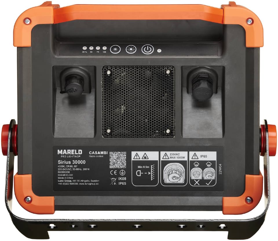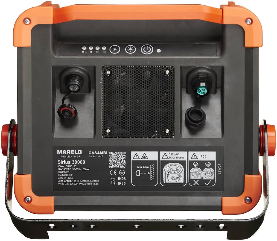 Lampa robocza o wyjątkowo wytrzymałej konstrukcji i niezwykłym rozproszeniu światła. Zapewnia mniej odblasków niż większość innych lamp. Niesamowicie jasny strumień świetlny 37 000 lumenów z możliwością przyciemniania. Ze względu na swoje rozmiary oraz fakt, że do lampy dołączona jest wąska podstawka, można jej używać stawiając na ziemi lub podłodze. Najlepszy efekt świetlny daje zamontowana na stojaku. Dzięki stopniowi ochrony IP 65 jest to idealna lampa do stosowania na zewnątrz. Sprawdza się również do użytku wewnętrznego jako oświetlenie ogólne bardzo dużych przestrzeni ściennych. Sirius 30000 można połączyć szeregowo z maksymalnie 4 urządzeniami na jednym kablu startowym. Połączenie szeregowe wymaga dedykowanego kabla, sprzedawanego osobno jako akcesorium.