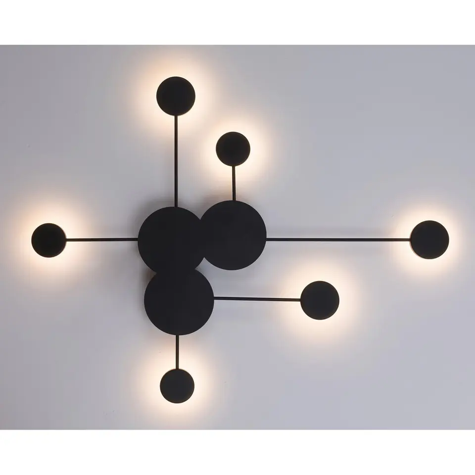 Pośrednie oświetlenie ścienne Amadeo z metalu i tworzywa sztucznego jest jednym z przedstawicieli stylu minimalistycznego i będzie doskonałym oświetleniem dodatkowym w każdym domu utrzymanym w stylu industrialnym.Ten czarny model, w którym połączono 9 elementów w kształcie dysku, może być umieszczony w salonie lub sypialni.