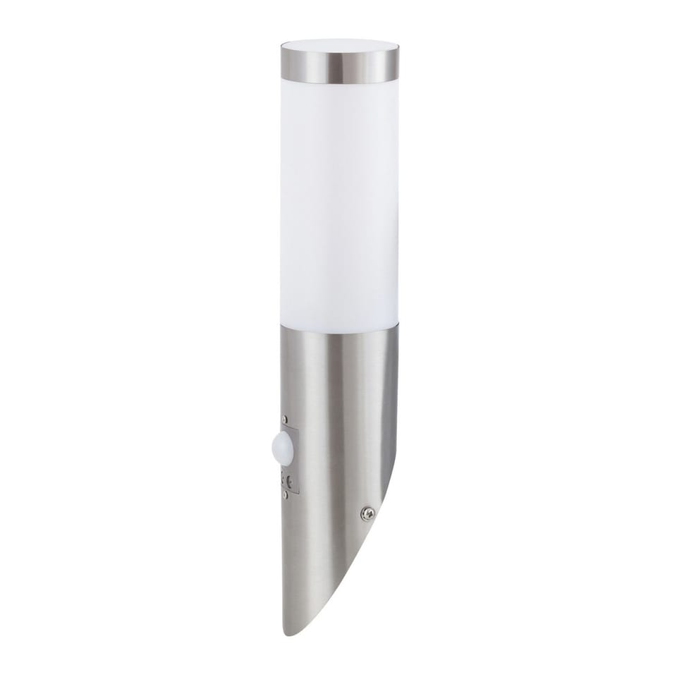 Specyfikacja- Typ: Zewnętrzne lampy ścienne- Styl: Nowoczesne- Pomieszczenie: taras, ściana zewnętrzna- Stopień ochrony IP: IP44- Kolor lampy: chrom satyna- Rodzaj czujnika: czujnik ruchu- Dane techniczne czujnika: 0-5m, 100°- Materiał lampy: metal- Kolor klosza: biały- Materiał klosza: tworzywo sztuczne- Liczba gniazd: 1- Typ gniazda: E27- Specyfikacje oprawy oświetleniowej: E27 1x MAX 25W- Stosowane napięcie: 230V, 50Hz- Odległość od ściany: 18 cm- Wysokość: 38 cm- Średnica: 7,6 cm- Waga netto: 0.4 kg- Klasa ochronności: I