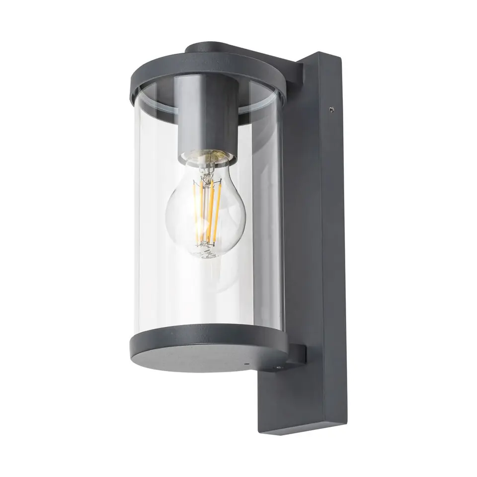 Specyfikacja- Typ: Zewnętrzne lampy ścienne- Styl: Industrialne- Pomieszczenie: taras, ściana zewnętrzna- Stopień ochrony IP: IP44- Kolor lampy: antracyt- Materiał lampy: aluminium- Kolor klosza: przeźroczysty- Materiał klosza: szkło- Liczba gniazd: 1- Typ gniazda: E27- Specyfikacje oprawy oświetleniowej: E27 1x MAX 60W- Stosowane napięcie: 230V, 50Hz- Odległość od ściany: 16 cm- Szerokość: 11,5- Wysokość: 29 cm- Waga netto: 1,02 kg- Klasa ochronności: I