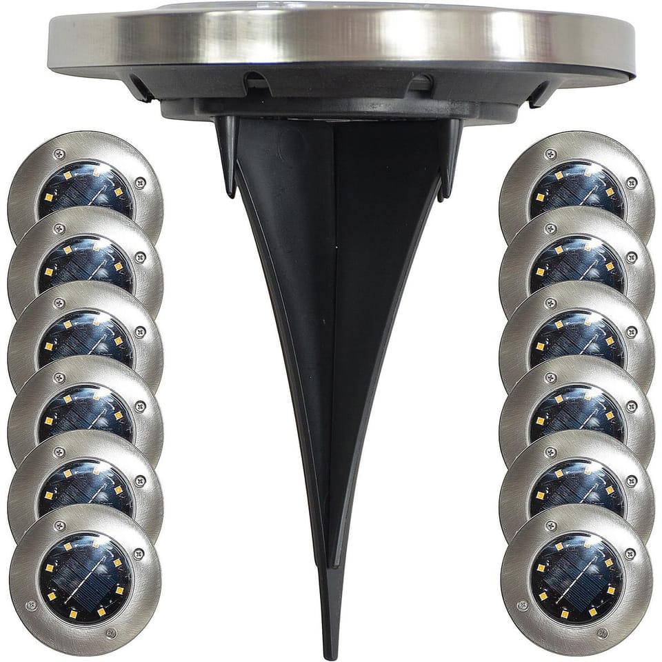 - w zestawie 12 szt. lamp wbijanych w podłoże8 jasnych diod LED SMD w każdej lampie daje mocne, równomierne światłoklasa szczelności IP44 zapewnia odporność na różne warunki pogodoweidealne do ogrodów, ścieżek, tarasów czy podjazdów dzięki łatwemu systemowi wbijaniawbudowany czujnik zmierzchu automatycznie aktywuje lampy po zapadnięciu ciemnościzapewnia estetyczny efekt świetlny, idealnie podkreślając ścieżki i przestrzeń ogrodu