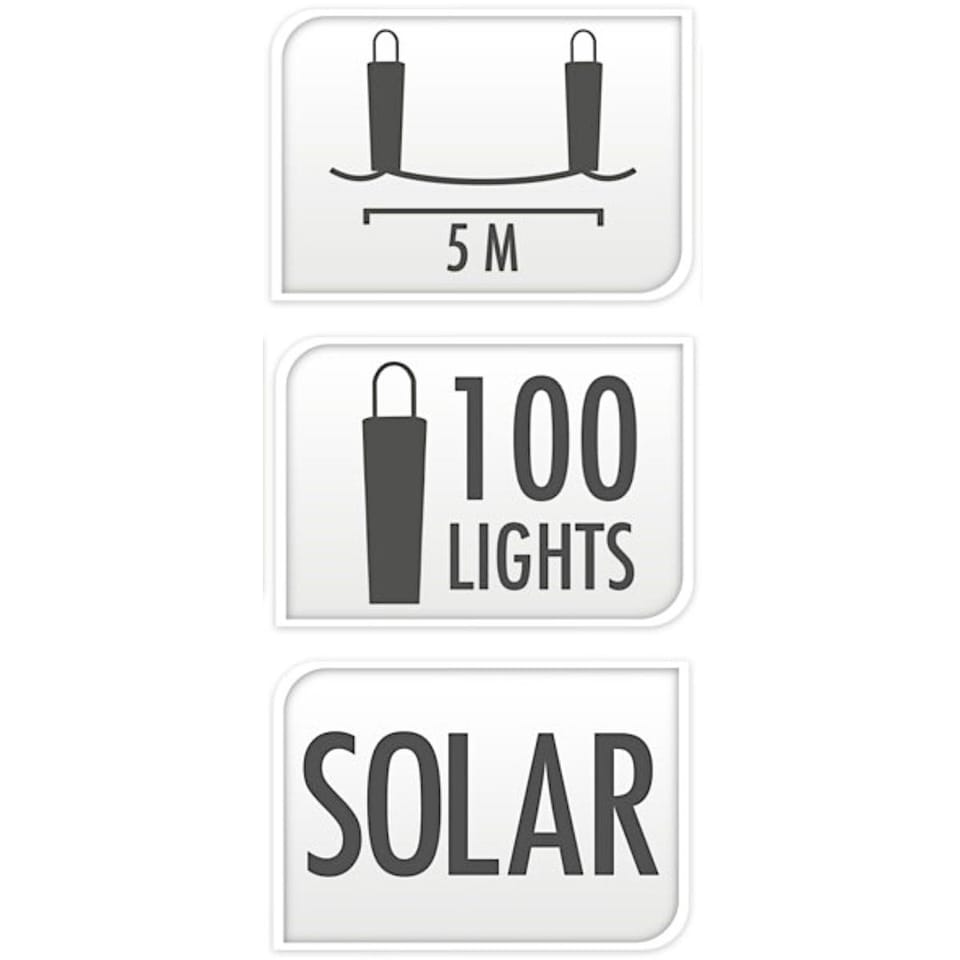 - 100 LED zapewnia mocne i równomierne oświetlenie przestrzenizasilanie solarne pozwala korzystać bez kabli i rachunków za prądelastyczny srebrny przewód umożliwia dowolne formowanie dekoracjiodstępy 5 cm gwarantują estetyczne i gęste rozmieszczenie diodkompaktowy panel solarny umożliwia łatwy montaż w dowolnym miejscuciepła biel światła tworzy przytulny klimat wieczorem