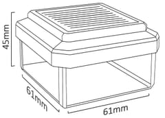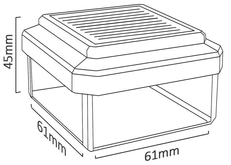 Solarną nakładkę LED na słupek o wymiarach 60x60 mm wyróżnia elegancka, kwadratowa forma, która doskonale komponuje się zarówno z klasycznym, jak i nowoczesnym otoczeniem. Zintegrowane 8 wysokiej jakości diod LED emituje przyjemne, neutralne światło o strumieniu świetlnym 6 lumenów, zapewniając subtelne, ale wystarczająco mocne oświetlenie otoczenia. Dzięki neutralnej barwie światła idealnie sprawdzi się jako akcent świetlny bez efektu oślepiania – tworząc przytulną atmosferę na posesji.