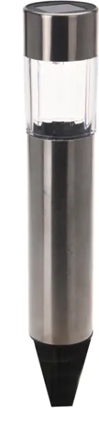 Lampa solarna ogrodowa wbijana LED śr.4,5cm wys.33cm Lampa idealnie podkreśli atmosferę ogrodu oraz wnosi do otoczenia domu niepowtarzalny klimat, dzięki niezwykłej grze świateł i cieni. Lampa włącza się automatycznie po zapadnięciu zmierzchu. Jest ona wtedy zasilana energią elektryczną zgromadzoną w ciągu dnia w baterii. Czas przez jaki działa lampa zależy od warunków pogodowych, lokalnych warunków klimatycznych i położenia geograficznego oraz ilości światła słonecznego w ciągu dnia w danej porze roku. w normalnych warunkach użytkowania, gdy lampa codziennie w ciągu dnia usytuowana jest w pełnym słońcu przez 6-8 godzin, czas świecenia wynosi średnio 6-8 godzin. Czas świecenia diody LED, będącej źródłem światła w lampie solarnej wynosi 100000 godzin.Dane techniczne: Średnica:4,5cm, Wysokość:33cm, Kolor światła: ciepły biały, Materiał: stal nierdzewna, Lampa wbijana,