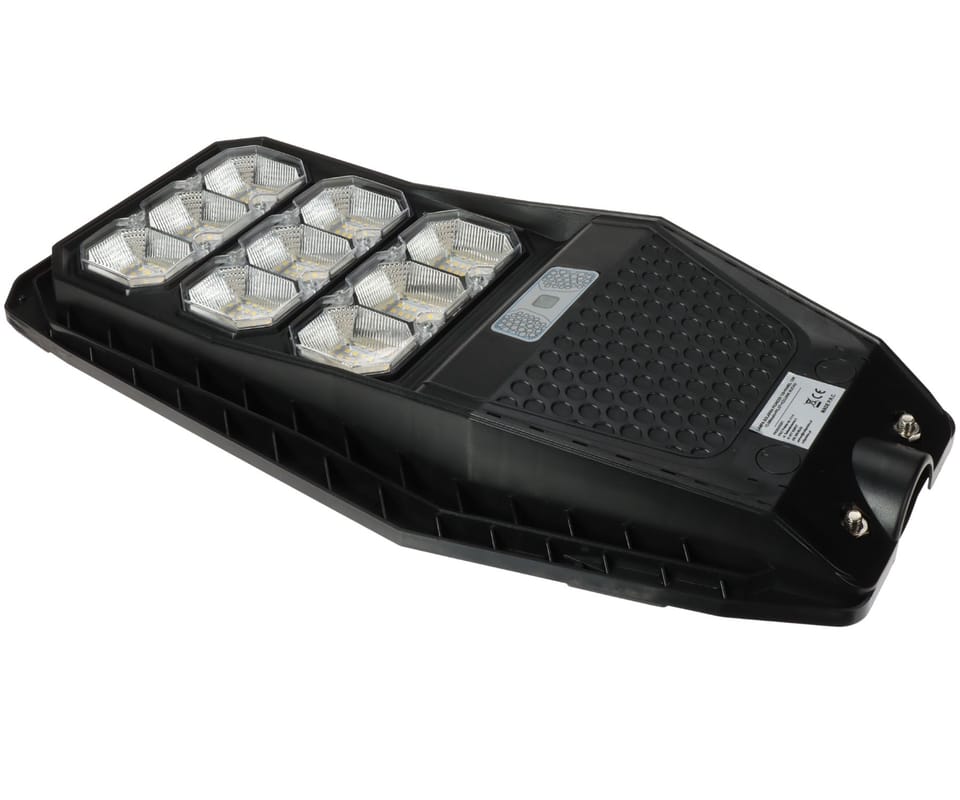 Lampa solarna PIONEER 120W to wydajna lampa LED zasilana panelem słonecznym. Jest niezastąpionym elementem każdego ogrodu, parku oraz architektury. Pozwala na oświecenie dowolnego miejsca bez konieczności podłączenia do sieci. Wyposażona w czujnik zmierzchu i ruchu, inteligentne zarządza światłem. Lampa ładuje się w dzień, a włącza się z umiarkowaną mocą w nocy. W momencie wykrycia ruchu, lampa włącza się z maksymalną mocą, po czym wraca do świecenia umiarkowanego.