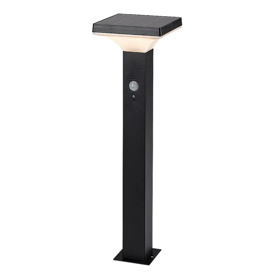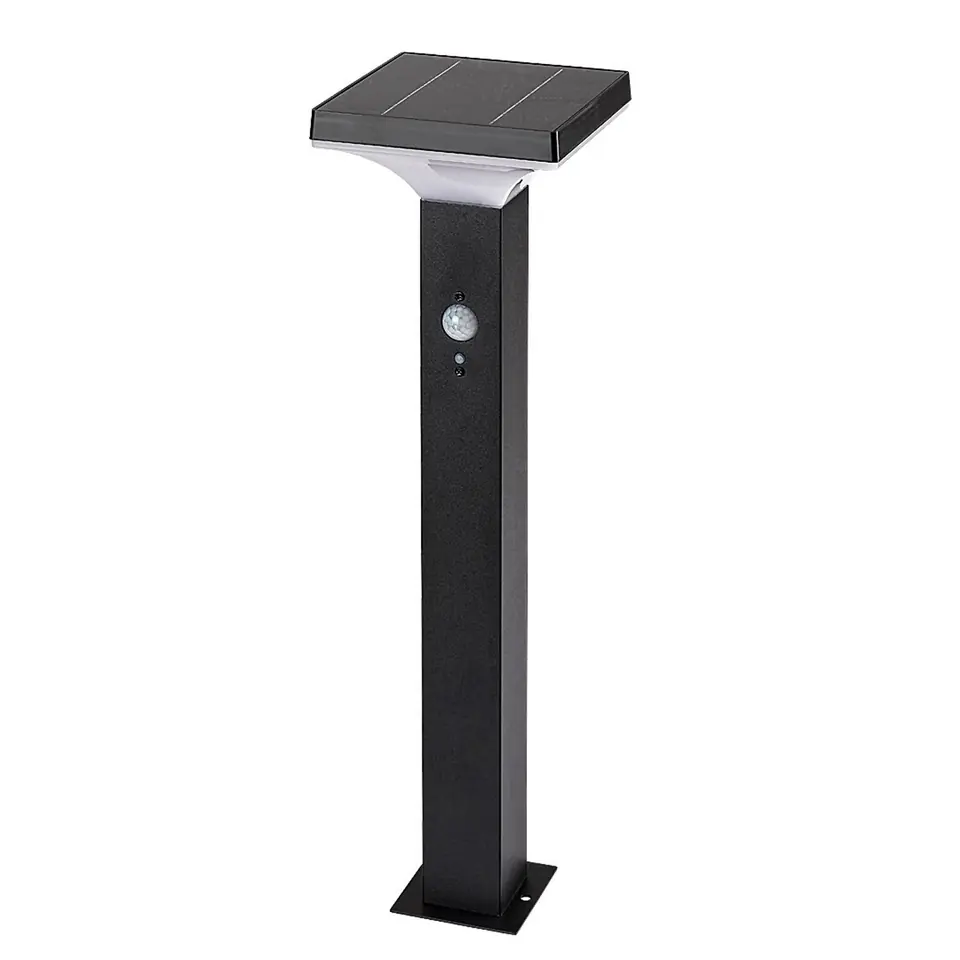 Specyfikacja- Kategoria produktu: lampy ogrodowe- Typ: lampy solarne- Styl: nowoczesne- Przeznaczenie: taras, ogród, ściana zewnętrzna- Temperatura barwowa: ciepła biel- Strumień świetlny źródła światła: 400 lm- Specyfikacje źródła światła: 4W- Technologia LED: tak- Stopień ochrony: IP44- Kolor lampy: czarny- Dane techniczne czujnika: 6-8m, 110°- Materiał lampy: stal nierdzewna- Kolor klosza: biały- Materiał klosza: tworzywo sztuczne- Czas życia źródła światła: 10000 godzin- Stosowane napięcie: DC 3.7V- Szerokość: 145 mm- Wysokość: 500 mm- Barwa światła: 3000 K- Aakumulator: 3,7V 2200mAh- Głębokość otworu montażowego: 80 mm- Rodzaj czujnika: czujnik ruchu PIR, czujnik światła- Klasa ochronności: III- Optymalny zakres temperatury pracy: od -20°C do +40°C- Czas ładowania akumulatora: 4.5 godziny- Czas pracy na akumulatorze: 1.5 godziny