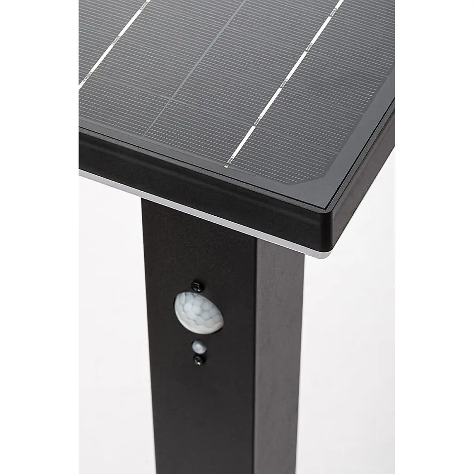 Cechy- Nowoczesna, zewnętrzna solarna oprawa stojąca- Wykonana ze stali nierdzewnej- Wbudowany czujnik ruchu PIR- 4 tryby pracy- Wbudowane źródło światła LED o mocy 4 W- Czujnik ruchu wykrywa ruch z odległości 6-8 metrów, w zakresie 110°- Stopień ochrony: IP44