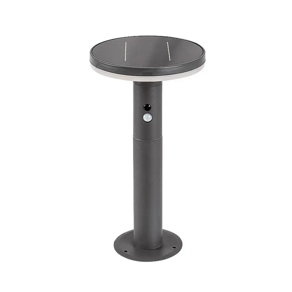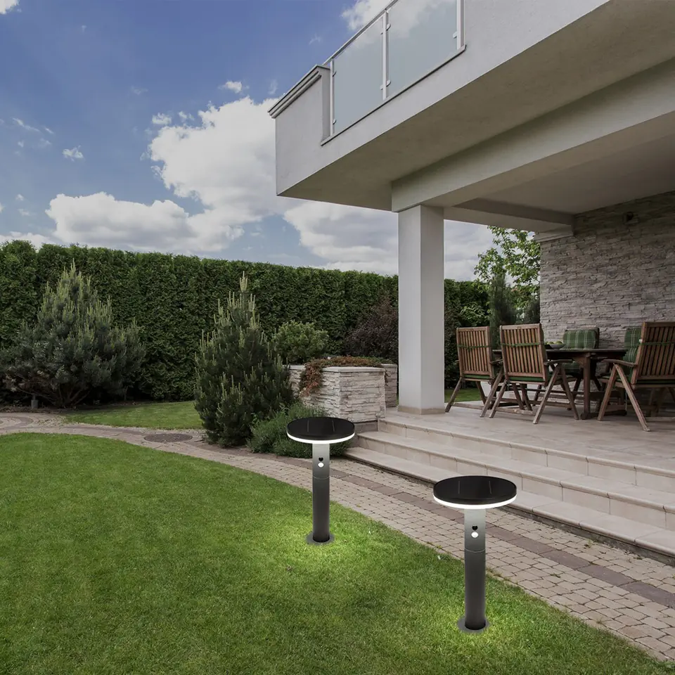Nowoczesna solarna oprawa stojąca Alaska z czujnikiem ruchu, do zastosowania na zewnątrz jest praktycznym wyborem do oświetlenia ogrodu. Może być dobrym rozwiązaniem w oświetleniu ścieżki prowadzącej przez ogród, wzdłuż której można umieścić kilka opraw.Ten składający się z okrągłych kształtów model w kolorze antracytowym został wykonany ze stali nierdzewnej i jest uzupełniony białym kloszem z tworzywa sztucznego.