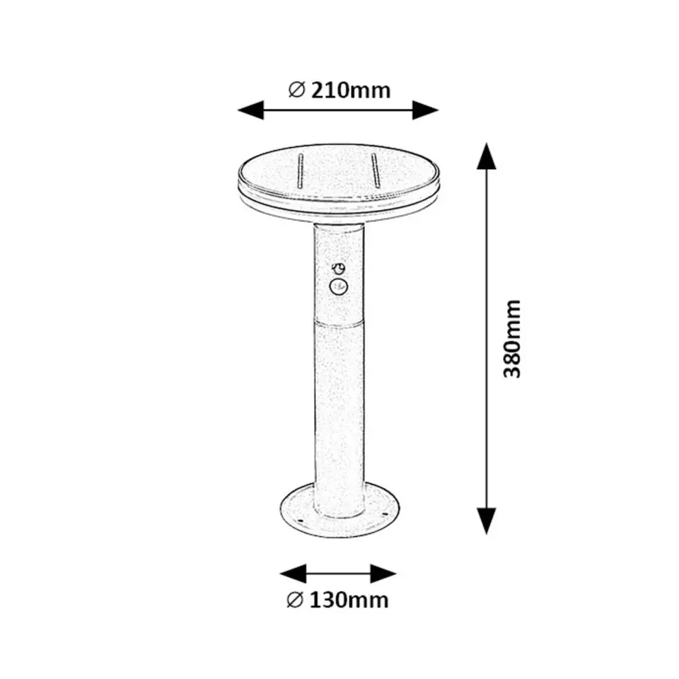 Specyfikacja- Kategoria produktu: lampy ogrodowe- Typ: lampy solarne- Styl: nowoczesne- Przeznaczenie: ogród- Temperatura barwowa: naturalna biel- Strumień świetlny źródła światła: 250 lm- Moc źródła światła: 10W- Technologia LED: tak- Stopień ochrony: IP44- Kolor lampy: antracyt- Dane techniczne czujnika: 5-8m, 120°- Materiał lampy: stal nierdzewna- Kolor klosza: biały- Materiał klosza: tworzywo sztuczne- Czas życia źródła światła: 10000 godzin- Średnie zużycie energii: 10 (kwh/1000 Ah)- Stosowane napięcie: DC 3.7V- Wysokość: 380 mm- Średnica: 210 mm- Barwa światła: 4000 K- Akumulator: 3,7V 2500mAh- Rodzaj włącznika: z wyłącznikiem- Rozmiar otworu montażowego: 130 mm- Rodzaj czujnika: czujnik ruchu, czujnik oświetlenia- Klasa ochronności: III- Czas ładowania akumulatora: 8 godzin- Czas pracy: 2 godziny