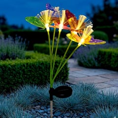 - panel solarny umożliwia ładowanie energią słoneczną bez podłączania do prąduwysokość 76 cm pozwala wyeksponować lampę w rabacie lub trawnikuczujnik zmierzchu automatycznie uruchamia światło po zapadnięciu ciemnościelastyczne mocowania sprawiają, że motyle poruszają się na wietrze 5 diod LED zapewnia wielokolorowy, dekoracyjny efekt świetlnyruchomy panel słoneczny ułatwi odpowiednie skierowanie go w stronę słońcadekoracyjna forma motyli nadaje przestrzeni lekkości i uroku