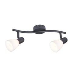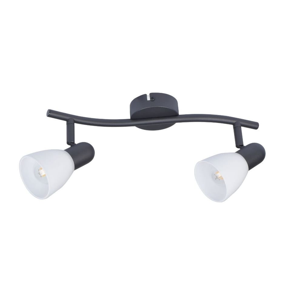 Lampa sufitowa punktowa Rabalux Soma z miejscem na 2 źródła światła polecana jest osobom, które preferują ruchome lampy zapewniające skoncentrowane oświetlenie zamiast światła rozproszonego. Ten elegancki model doskonale sprawdzi się w salonie, jadalni, przedpokoju lub sypialni. Lampa punktowa wykonana jest z metalu – posiada czarną oprawę oraz białe, szklane klosze w kształcie litery A. Może być zamocowana do sufitu za pomocą małej, okrągłej podstawy dekoracyjnej.