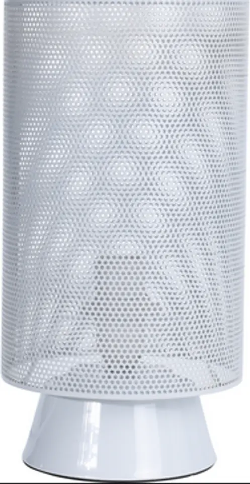 Lampa stołowa 20cm 40W biała. Stylowa lampa stołowa z metalowym abażurem. wysokość: 20cm średnica: 12,5cm zasilanieL 220/230V moc: 40W E14 kolor: biały długość przewodu zasilającego 150cm włącznik ON/OFF