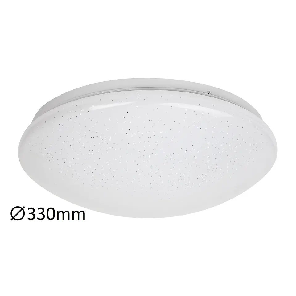 Specyfikacja- Typ: Lampa sufitowa- Styl: Nowoczesny- Temperatura barwowa: naturalna biel- Strumień świetlny źródła światła (lm): 1350- Specyfikacje źródła światła: 18W- Technologia LED: tak- Stopień ochrony IP: IP20- Kolor lampy: biały- Materiał lampy: metal- Kolor klosza: biały- Materiał klosza: tworzywo sztuczne- Czas życia źródła światła (h): 20000- Średnie zużycie energii (kwh/1000 Ah): 18.0- Specyfikacje oprawy oświetleniowej: LED 18W- Stosowane napięcie: 230V, 50Hz- Odległość od sufitu: 107 mm- Średnica: 330 mm- Waga netto (kg): 0.42- Barwa światła (K): 4000- Gwiezdny efekt: tak- Klasa ochronności: I