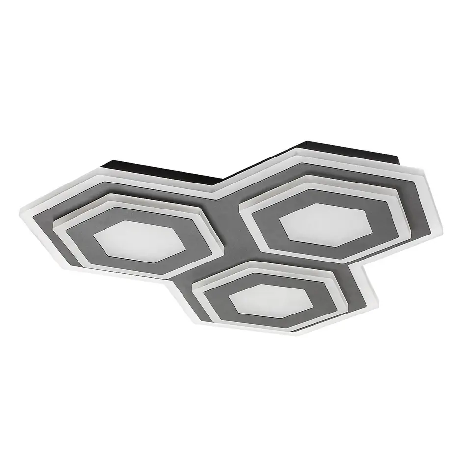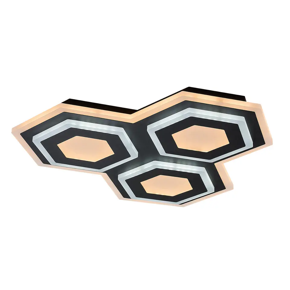 Cechy- Nowoczesny design- Złożona z trzech sześciokątnych elementów- Wbudowane źródło światła LED o mocy 72 W- Barwa światła: ciepła i zimna biała- Odległość od sufitu wynosi zaledwie 45 mm