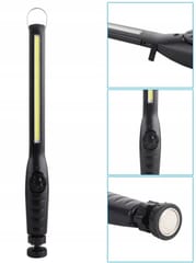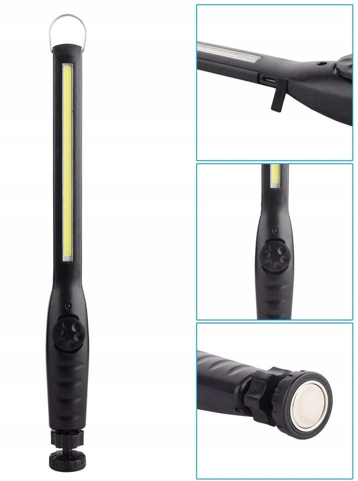 Kod producenta: 1029621Praktyczna lampa warsztatowa LED COB 8W marki RETOO to niezastąpione źródło światła w warsztacie, garażu, na budowie oraz w pracy w terenie. Dzięki obrotowemu o 360deg; korpusowi oraz magnetycznej podstawie, możliwe jest precyzyjne ustawienie strumienia światła w dowolnej pozycji. Wyposażona w energooszczędne diody COB LED, lampa zapewnia intensywne, jednorodne światło oraz dodatkową funkcję latarki punktowej. Zasilana akumulatorem o pojemności 1200 mAh, pracuje bez przerwy do 2,5 godziny.Cechy produktu: